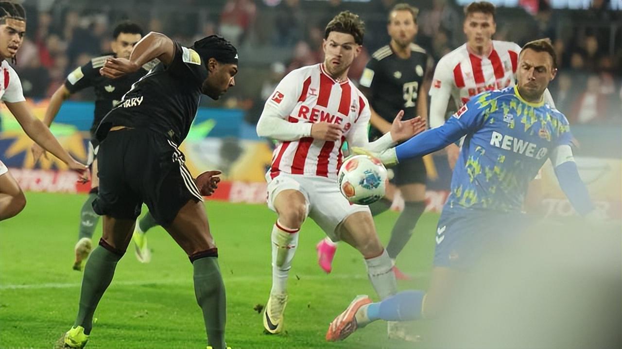 那场德国杯是拜仁本赛季第一次在比赛中面临落后的局面,但仅仅5分钟之后,明显越位在先的迪亚斯就补射扳平(德国杯前两轮不设VAR),而这一回也大同小异。由于科隆极端球迷在开场时大量燃放烟花导致场内烟幕弥漫,比赛从第3分钟起一度中断了近10分钟,于是上半场补时长达11分钟。就在这段超长补时来到第5分钟时,格纳布里扳平了比分,即拜仁只落后了不到10分钟。